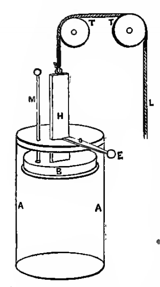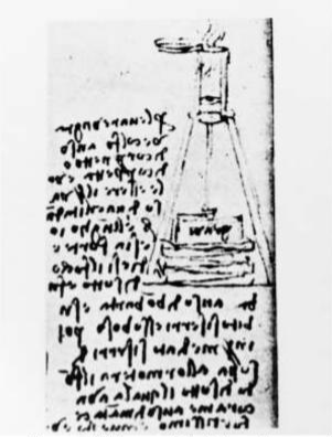 Figure 4. Leonardo DaVinci’s instrument for measuring the expanding volume of steam (1510). The counterweight N equals the weight of the piston so that that its weight does not disturb the measurement. Source: Johns 2021, 243.